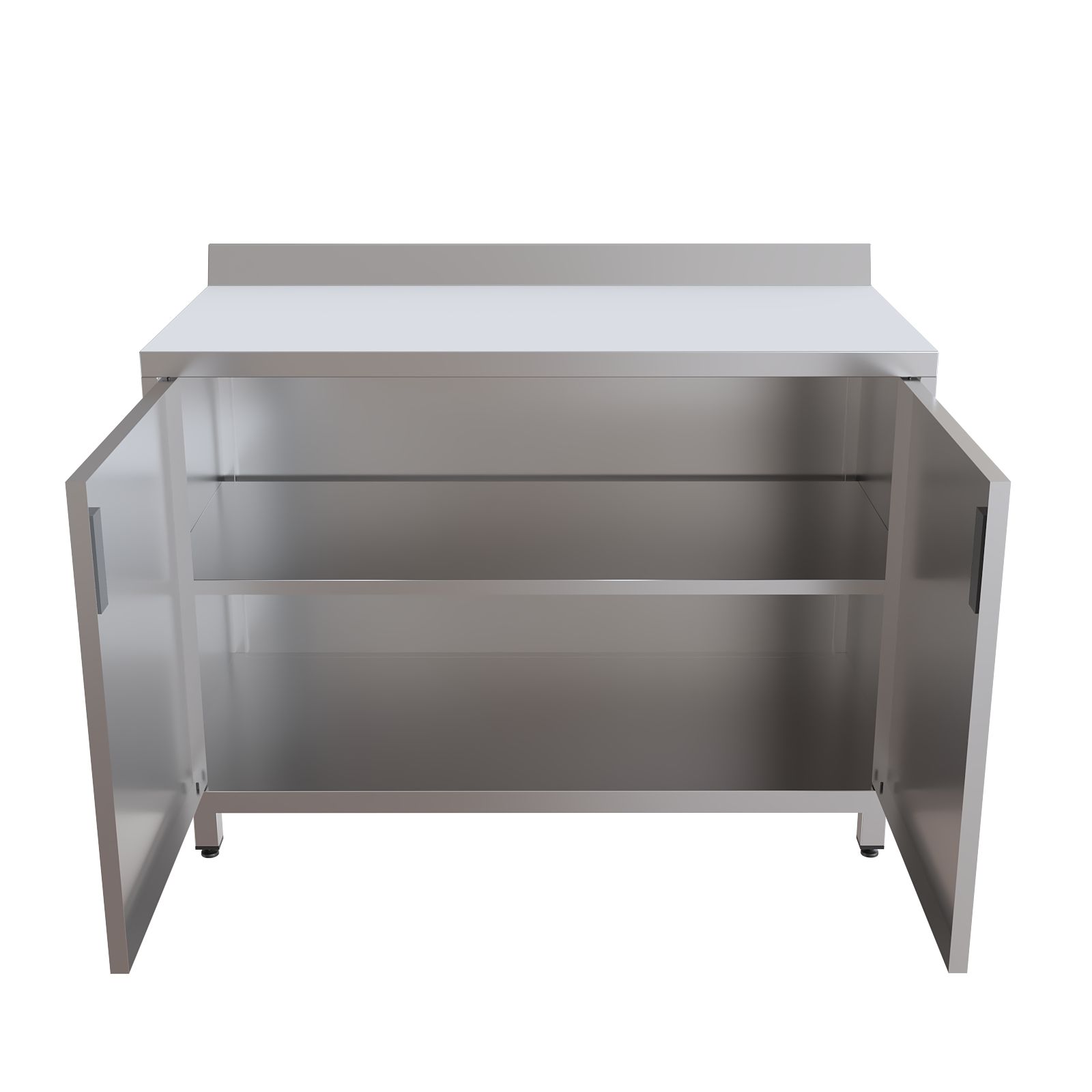 Модель оснащена удобной столешницей с бортом, двумя распашными дверцами и внутренней полкой для рациональной организации пространства. Шкаф установлен на четырех регулируемых по высоте опорах, что обеспечивает устойчивость и возможность точной подстройки под особенности помещения.