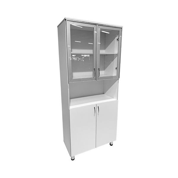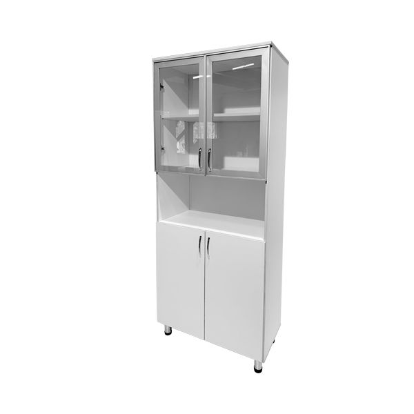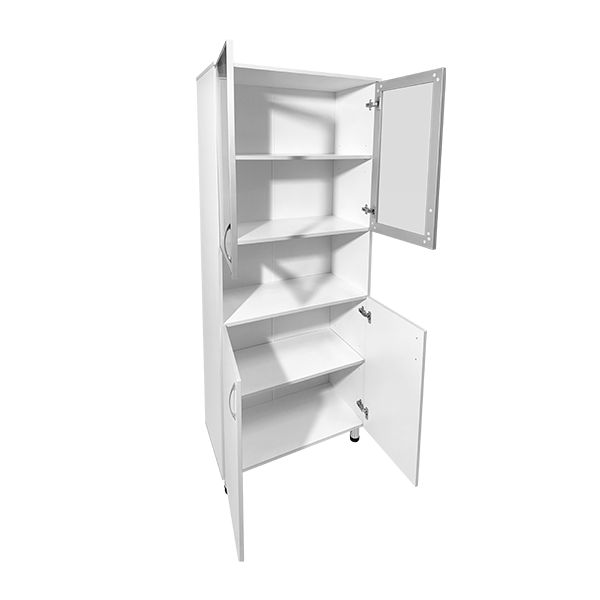 Наличие разделений внутри ниши позволяет легко структурировать медицинскую документацию и обеспечивает удобный доступ к ней. Изделие изготовлено из прочного ЛДСП толщиной 16 мм, что обеспечивает долгий срок службы шкафа и надежность его использования. А стеклянная верхняя дверца в алюминиевом профиле добавляет стильности и утонченности к общему дизайну.