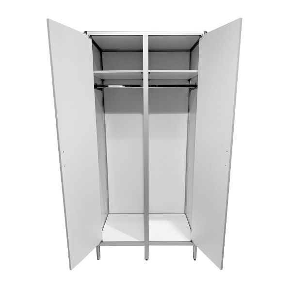 Оснащенный полками, штангами для вешалок и удобными дверцами, шкаф СТР МД-ал 108.03 предлагает идеальное пространство для хранения разнообразных элементов одежды сотрудников. Каркас из алюминиевого профиля обеспечивает прочность, устойчивость конструкции и долговечность использования. Порошковое покрытие алюминиевого профиля придает шкафу стильный и современный внешний вид. Регулируемые по высоте ножки делают установку шкафа легкой даже на неровных поверхностях, обеспечивая устойчивость и комфорт в использовании.