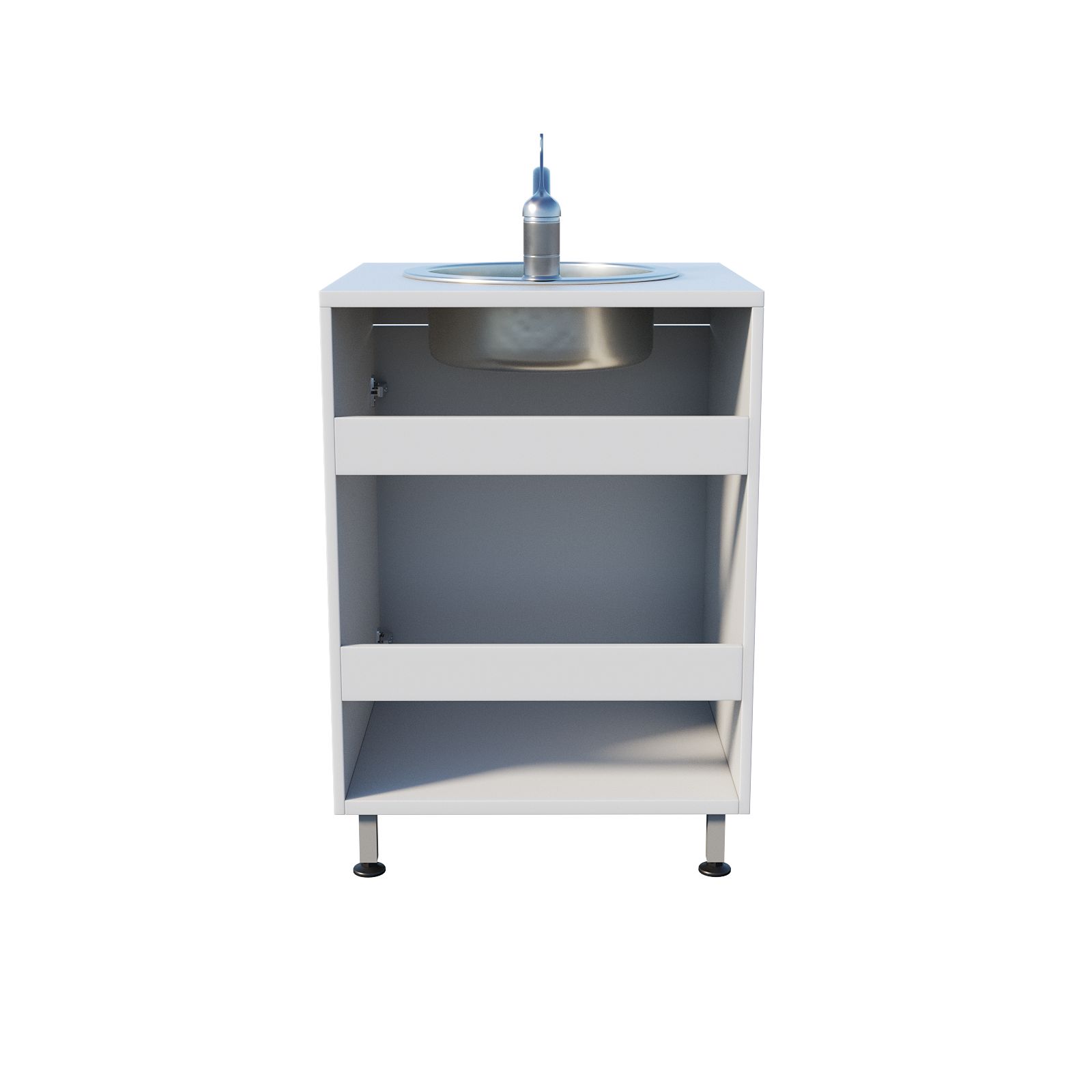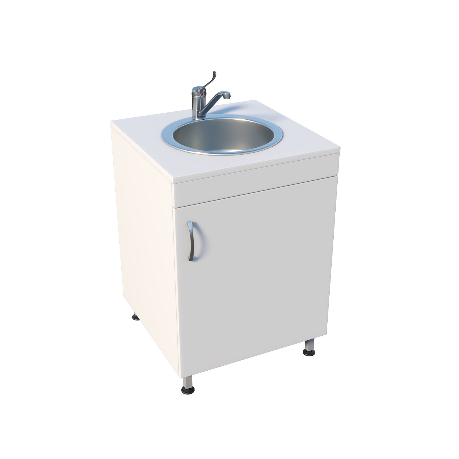 Мойка медицинская оснащена тумбой под мойкой с распашной дверцей, что обеспечивает легкий доступ к хранимым материалам. Регулируемые по высоте ножки с винтовыми опорами-регуляторами позволяют установить мойку даже на неровной поверхности, обеспечивая стабильность и комфорт во время работы. Чаша со смесителем устанавливается сверху, что упрощает процесс мойки и ухода за оборудованием.