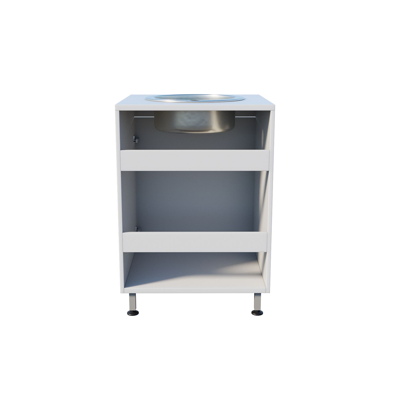 Каркас мойки выполнен из ЛДСП, что придает конструкции легкость и прочность, а чаша из нержавеющей стали обеспечивает долговечность и гигиеничность использования.
