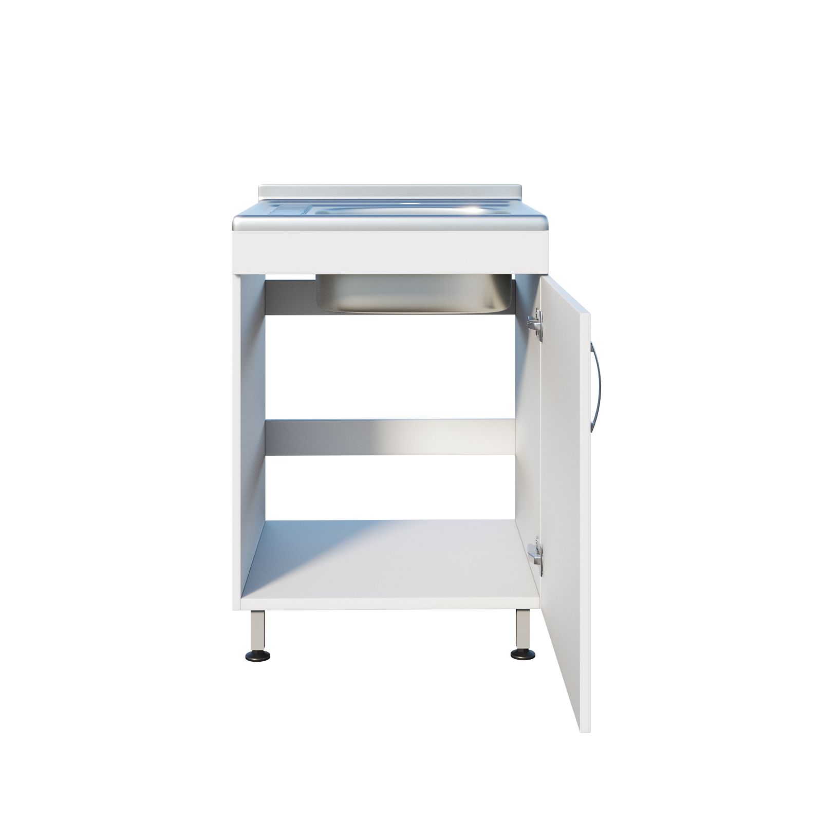 Медицинская мойка ММ 13.002 предназначена для установки в лабораториях и других медицинских учреждениях. Накладная чаша выполнена из нержавеющей стали: она устойчива к воздействию большинства химических веществ, не подвержена коррозии и отличается высокой долговечностью. Модель комплектуется хирургическим локтевым смесителем. Корпус тумбы изготовлен из ЛДСП толщиной 16 мм, предусмотрена распашная дверца. Для компенсации неровностей пола опоры на ножках регулируются по высоте.