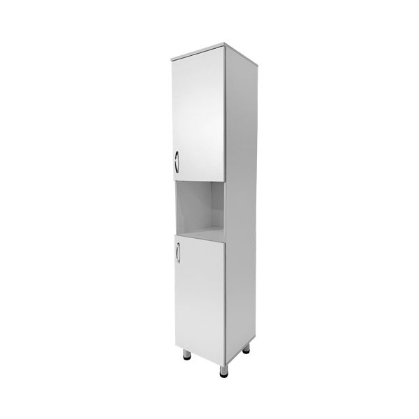 Ниша шкафа по центру между секциями, что способствует более удобному хранению и категоризации документов, облегчая доступ к необходимой информации. Использование ЛДСП толщиной 16 мм при производстве обеспечивает надежность и долговечность конструкции, что делает шкаф надежным и стабильным элементом медицинского кабинета.