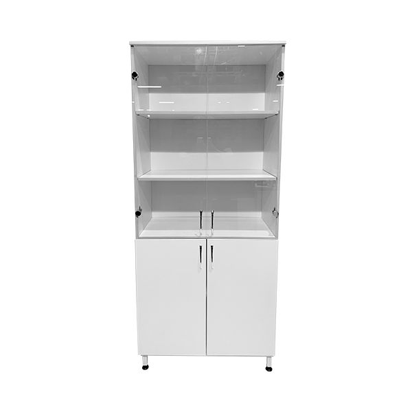 Каркас шкафа изготовлен из прочного стального профиля, покрытого порошковой краской, что обеспечивает не только устойчивость, но и привлекательный внешний вид. Стеклянные верхние дверцы придают шкафу стильный и современный вид, а ЛДСП используется для изготовления шкафа и нижних дверей, обеспечивая надежность и долговечность конструкции.