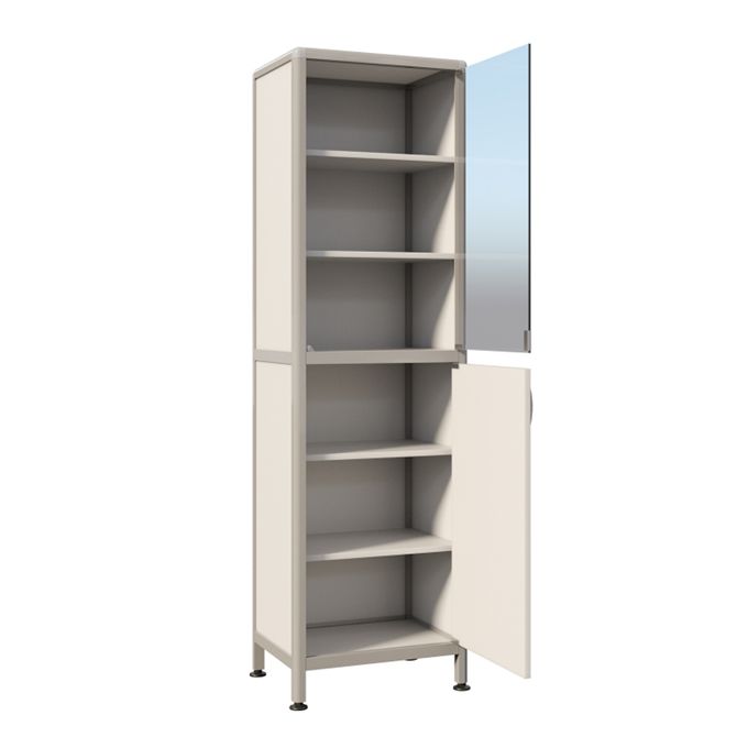Шкаф медицинский СТР МД-ал 111.03 оснащен полками, дверцами и регулируемыми по высоте ножками, что позволяет эффективно организовать хранение и легко находить нужные предметы. Каркас из алюминиевого профиля обеспечивает прочность, устойчивость и долговечность конструкции, гарантируя долгий срок службы шкафа. Верхняя дверца, выполненная из стекла, добавляет изысканности и позволяет визуально оценить содержимое шкафа.