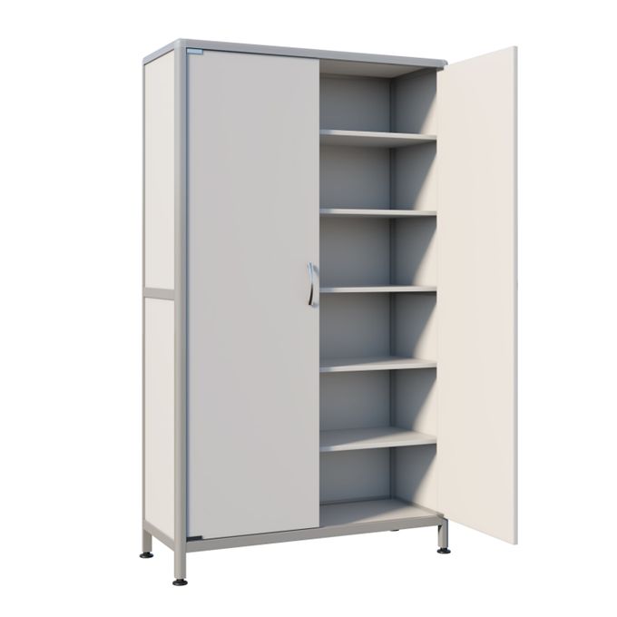 Шкаф СТР МД-ал 111.12 отличается вместительностью при минимальном занимаемом пространстве, что позволяет оптимально использовать место. Каркас из алюминиевого профиля обеспечивает прочность, устойчивость и долговечность всей конструкции. Порошковое покрытие алюминиевого профиля придает шкафу современный вид и защищает его от внешних воздействий.