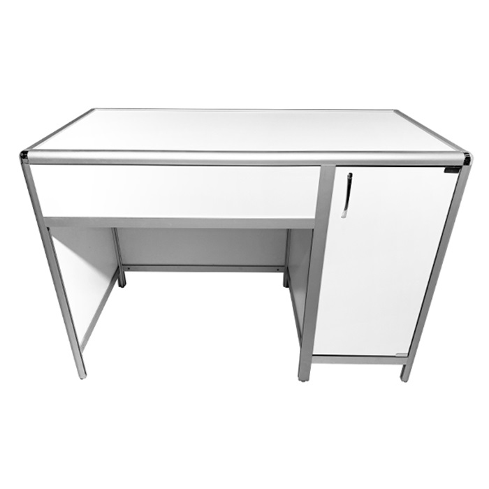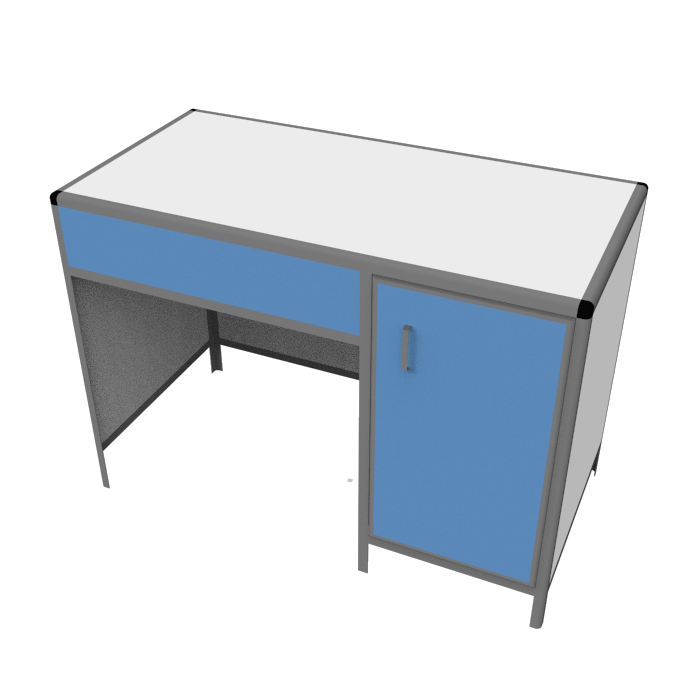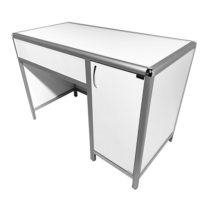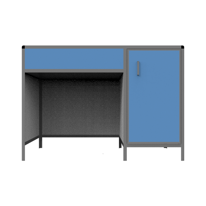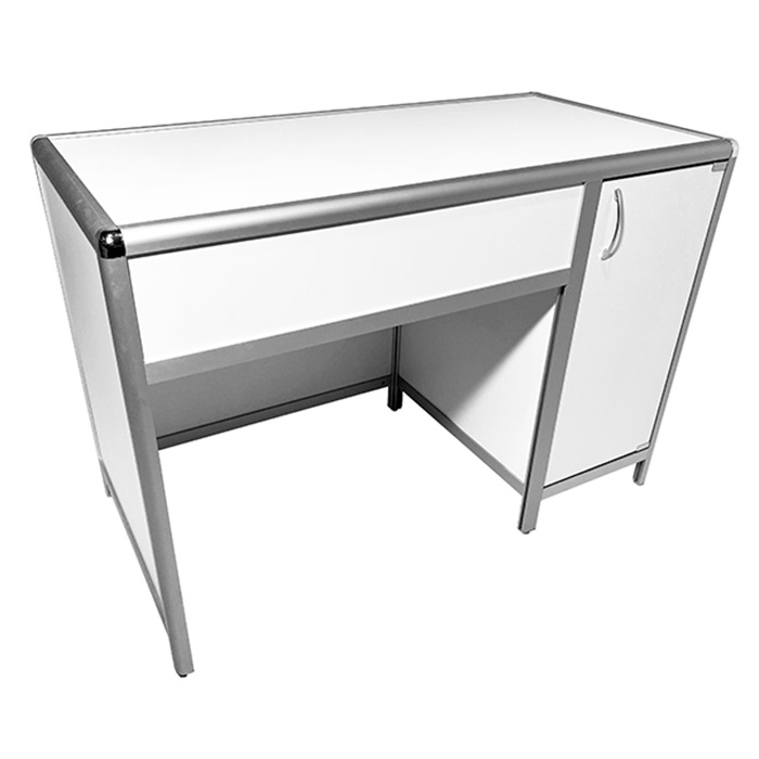 Стол оснащен удобной тумбой с распашной дверкой и полкой внутри, расположенной справа, что обеспечивает дополнительное пространство для хранения необходимых материалов и оборудования. Устойчивость и долговечность стола обеспечиваются прочными материалами и качественной сборкой.