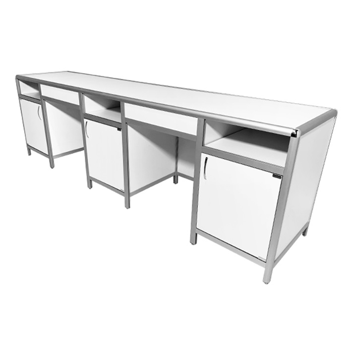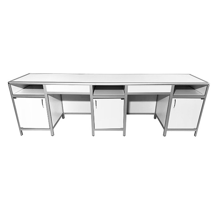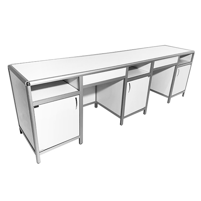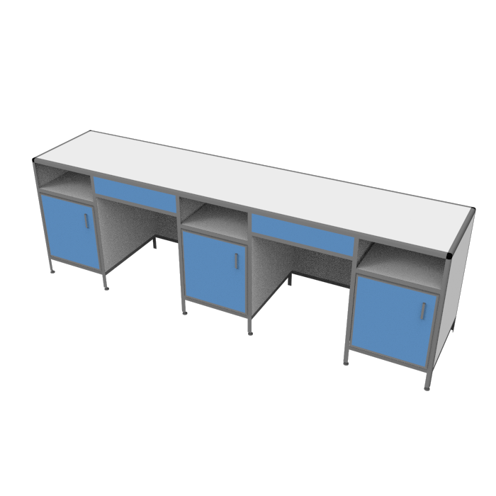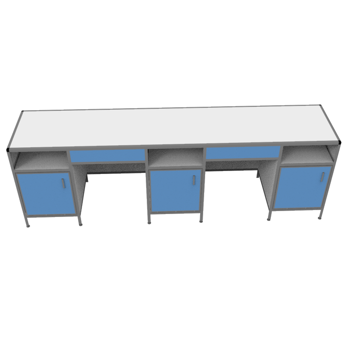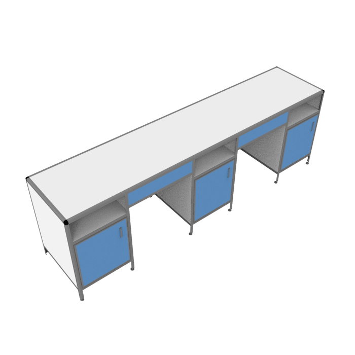 Стол лабораторный MED 10.012al представляет собой идеальное решение для создания эффективного и организованного рабочего пространства сотрудников лабораторий и медицинских учреждений. Оборудованный тремя тумбами, каждая из которых оснащена верхней открытой нишей, отделением с распашной дверкой и удобной полочкой внутри, этот стол обеспечивает максимальное удобство хранения и организации различных материалов.