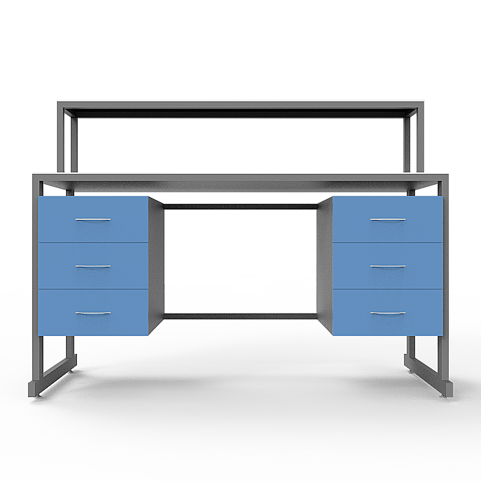 Модель СЛк 21.006 оснащена практичной надстройкой с полкой, а также двумя тумбами под столешницей, каждая из которых оборудована тремя выдвижными ящиками для удобного хранения и организации необходимых материалов и инструментов. Регулируемые по высоте ножки с винтовыми опорами позволяют установить стол на любой неровной поверхности, обеспечивая стабильность и комфорт при работе.