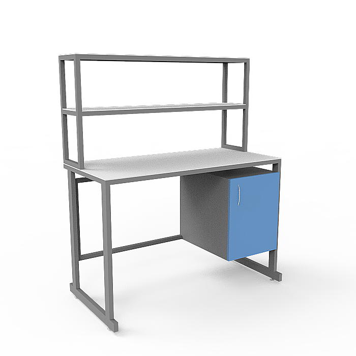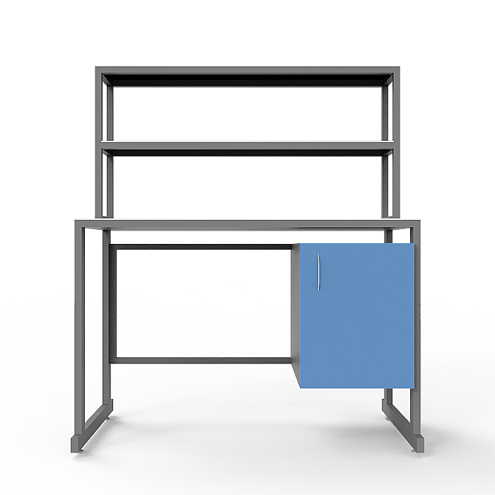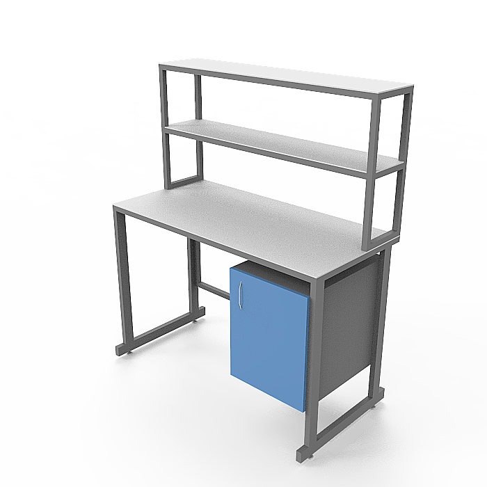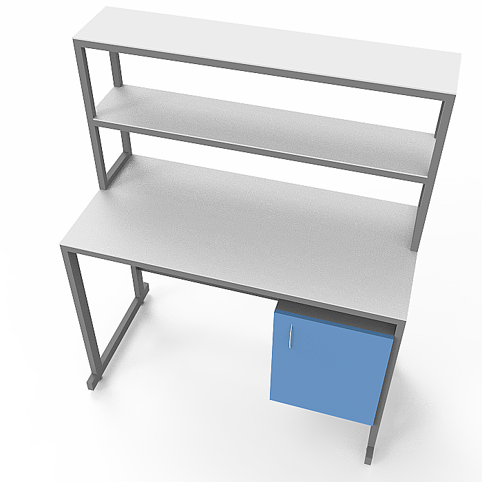 Модель СЛк 21.008 оснащена удобной надстройкой с двумя полками и тумбой с распашной дверцей под столешницей, что обеспечивает дополнительное пространство для хранения необходимых материалов и оборудования. Регулируемые по высоте ножки с винтовыми опорами позволяют легко адаптировать стол к любым условиям, включая неровные поверхности, а также обеспечивают стабильность и комфорт при работе.