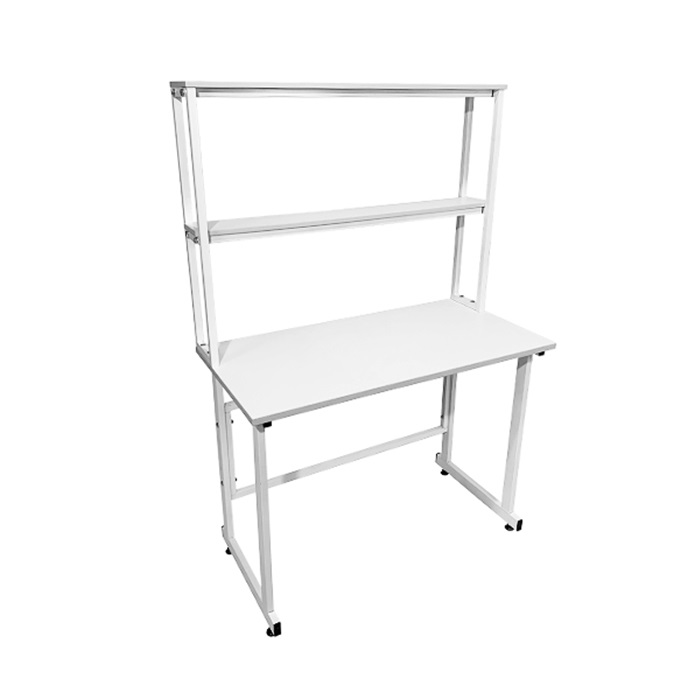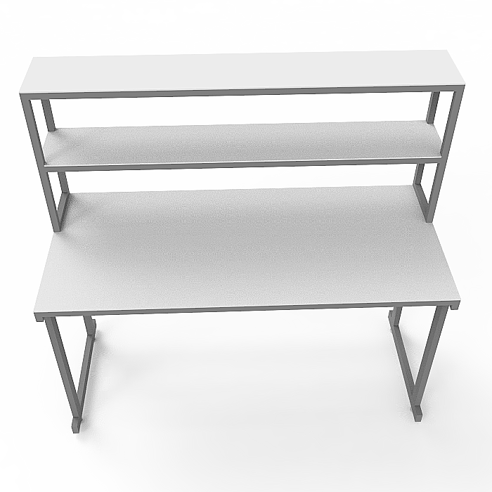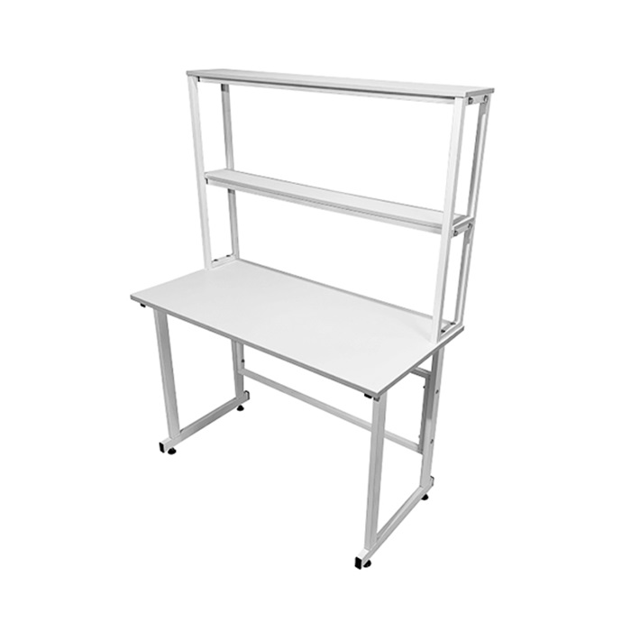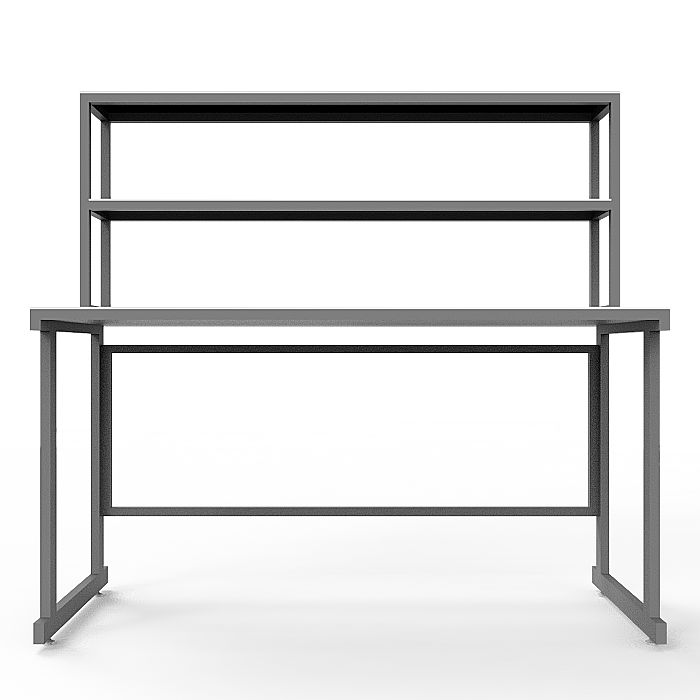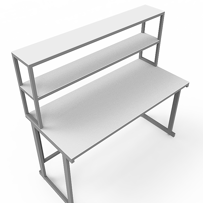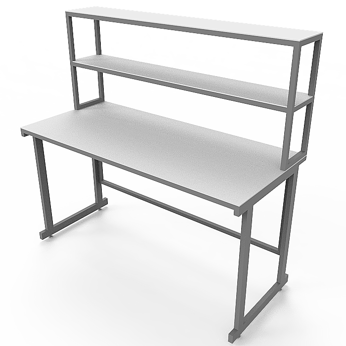 Стол лабораторный с надстройкой СЛн 16.001 используется в лабораториях или иных медучреждениях. Прочный каркас изготовлен из профиля 25Х50 мм из стали, покрытого порошковой краской. Столешница выполнена из ЛДСП (22 мм). Две полки надстройки изготовлены из ЛДСП толщиной 16 мм. Регулировка высоты ножек производится с помощью винтовых опор.