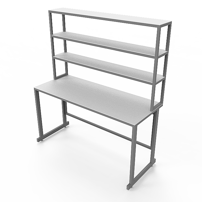 Стол лабораторный с надстройкой СЛн 16.002 является оптимальным решением для организации рабочего места лаборанта для проведения химических исследований. Несущий каркас стола выполнен из стального профиля 25Х50 мм и покрыт порошковой краской. Для изготовления столешницы используется ЛДСП толщиной 22 мм, а полки надстройки выполнены из ЛДСП толщиной 16 мм.