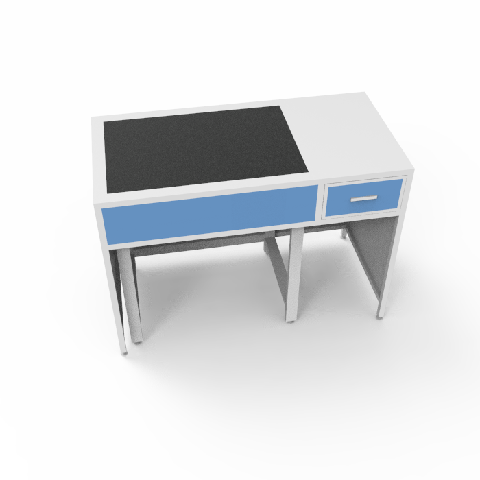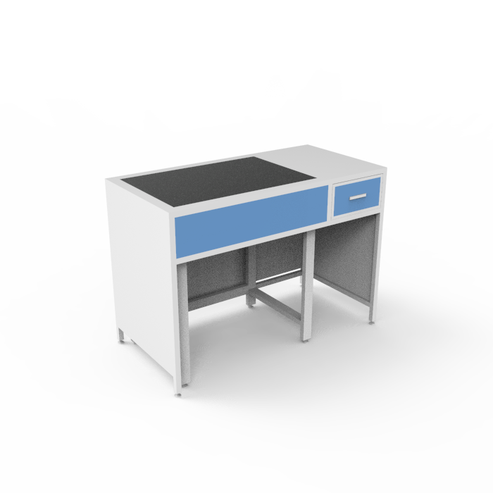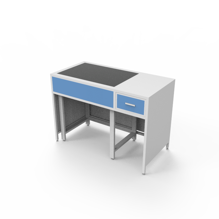 Особенности данной модели включают компактные размеры, что позволяет эффективно использовать пространство в лаборатории, и возможность установки на неровных поверхностях, что расширяет область применения стола. Белый цвет стола придает ему стильный и современный внешний вид, подчеркивая профессионализм и аккуратность рабочего места.