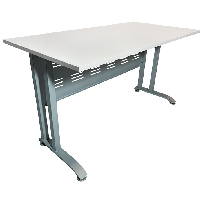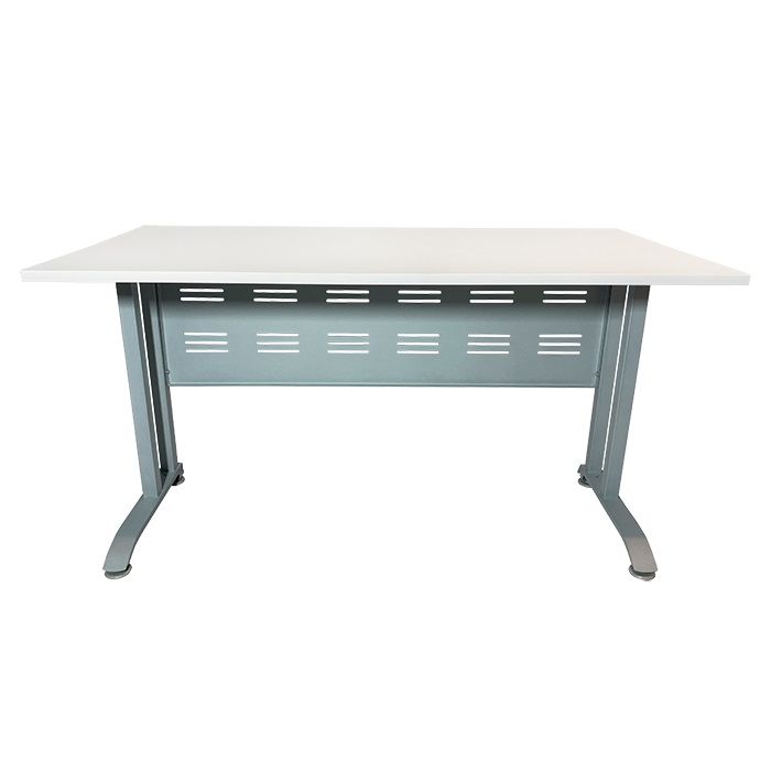 Белое ЛДСП столешницы с светло-серой кромкой придает столу современный и аккуратный внешний вид. Металлический перфорированный экран размером 1230х400 мм помогает организовать рабочее пространство, обеспечивая необходимую функциональность для выполнения задач.