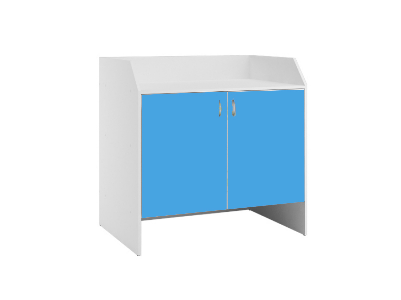 Особенностью стола пеленального MD СП 17.02 является своеобразное закрытое отделение под столешницей с двумя дверками, оснащенными элегантными хромированными ручками. Здесь находится полка, предназначенная для удобного хранения необходимых инструментов и принадлежностей, обеспечивая их легкий доступ при проведении процедур.