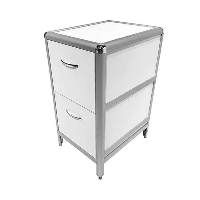 Каркас тумбы MED 16.006al изготовлен из прочного алюминиевого профиля с вертикальными стойками 30х30 мм и горизонтальными прогонами 33х20 мм, что обеспечивает надежность и долговечность конструкции. Отделка в белом цвете ЛДСП с светло-серой кромкой придает тумбе современный и стильный внешний вид.