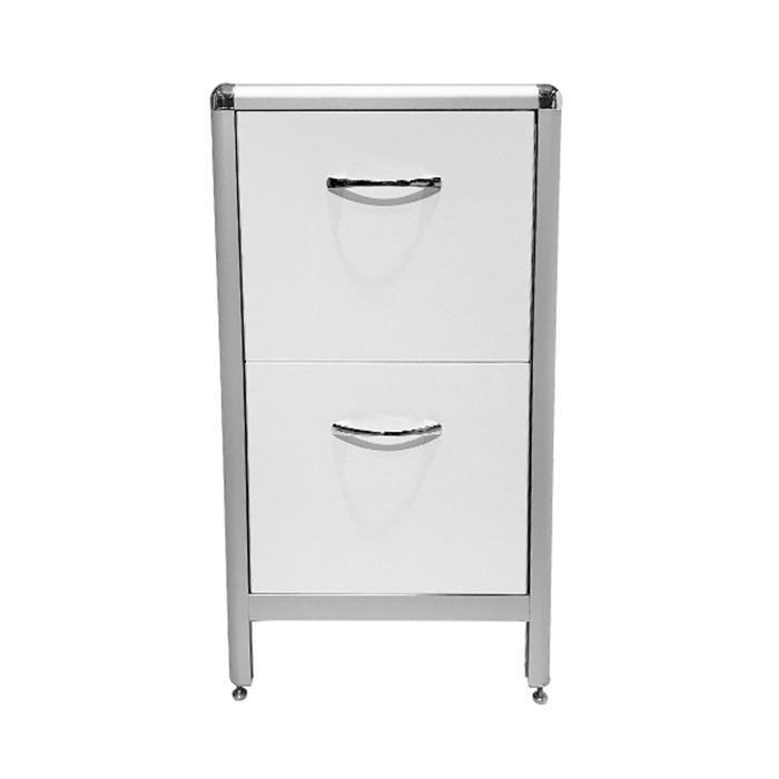 Тумба MED 16.006al оснащена двумя просторными ящиками размером 384х134х296 мм каждый, способными выдерживать равномерно распределенную нагрузку до 10 кг. Высота от пола до верхней кромки рабочей поверхности составляет 750 мм, а до нижней - 734 мм, что делает использование тумбы комфортным для пользователей разных ростов.