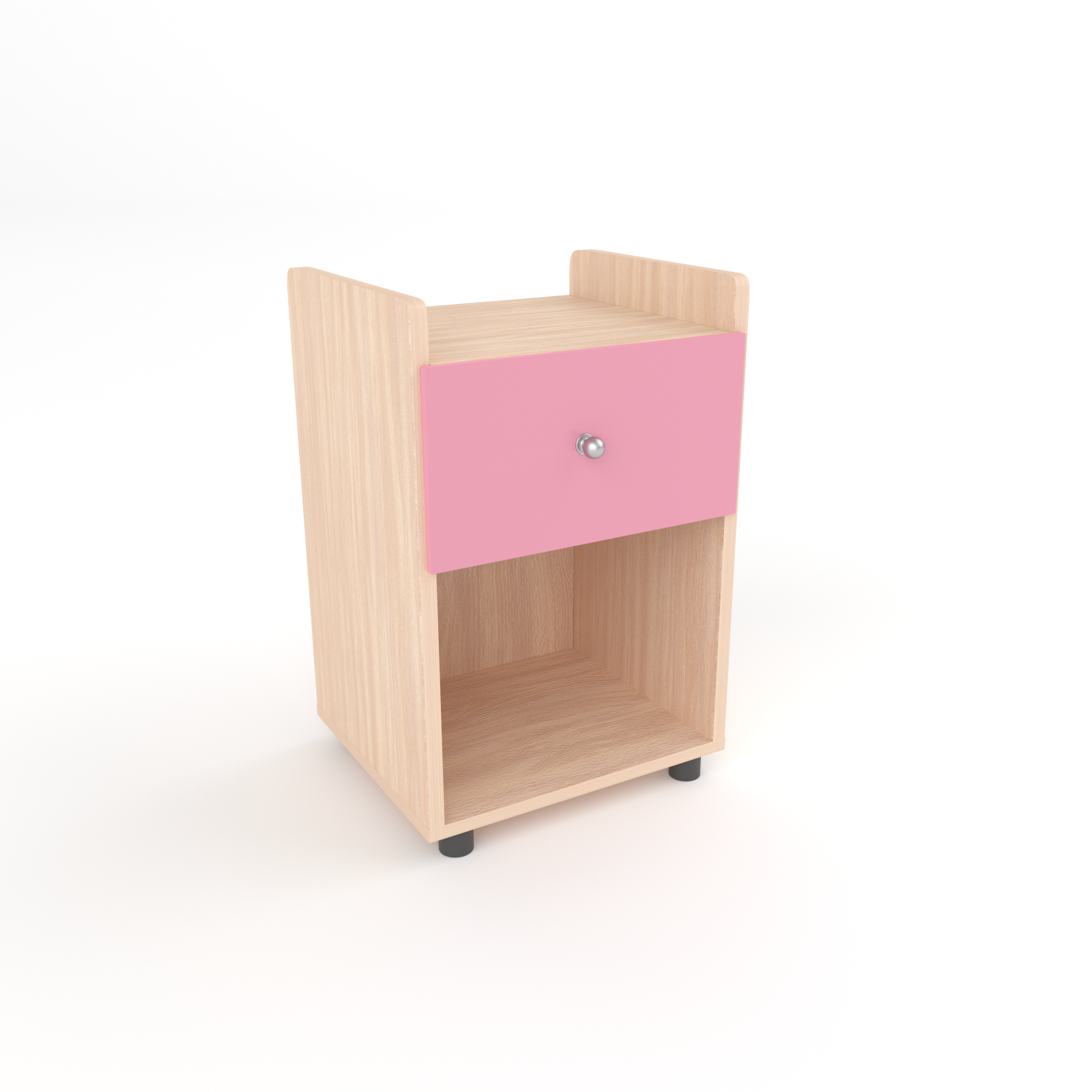 Стильная и яркая тумбочка для детской комнаты «Лолипоп» нежно-розового цвета изготовлена из ЛДСП 16 мм. Наша фабрика производит тумбочки для детских комнат высокого качества.